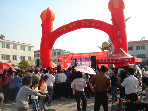 在寿县天马摩托经销单位永达车业(原诚信车业)的积极运作下,寿县的宣传活动开展的有声有色。寿县的五个天马乡镇网点,深入各自乡镇的农村,展开了“共建和谐新农村、天马摩托送电影”为主题的全面立体式的的宣传工作。为支持新农村建设,真正把实惠送进农民朋友手中,永达车业在全县农村统一举行“红五月、购天马摩托抽大奖”大酬宾活动。活动期间,凡在寿县各个天马销售网点购买天马摩托车,均得到抽奖券一张参与抽奖,并于6月2日由永达车业组织进行统一公开、公正的抽奖活动,并现场颁发奖品。一等奖1名,天马125摩托车一台,二等奖2名,各奖名牌微波炉一台,三等奖5名,各奖名牌电饭锅一台。