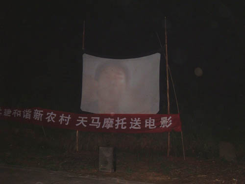 银龙村地处黄花镇偏远地区,出到镇上也要一个小时的车程,平时村民的业余文化生活比较单调,自从听说天马摩托要来他们村放电影的消息后,村民都象过节一样热闹起来。下午6点刚过,送电影工作组刚到了回龙银龙村村口,就受到村民们热烈的欢迎!