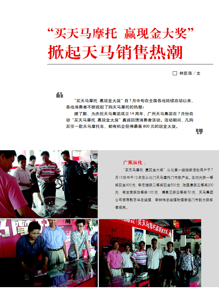 “买天马摩托 赢现金大奖”活动全国火热进行中